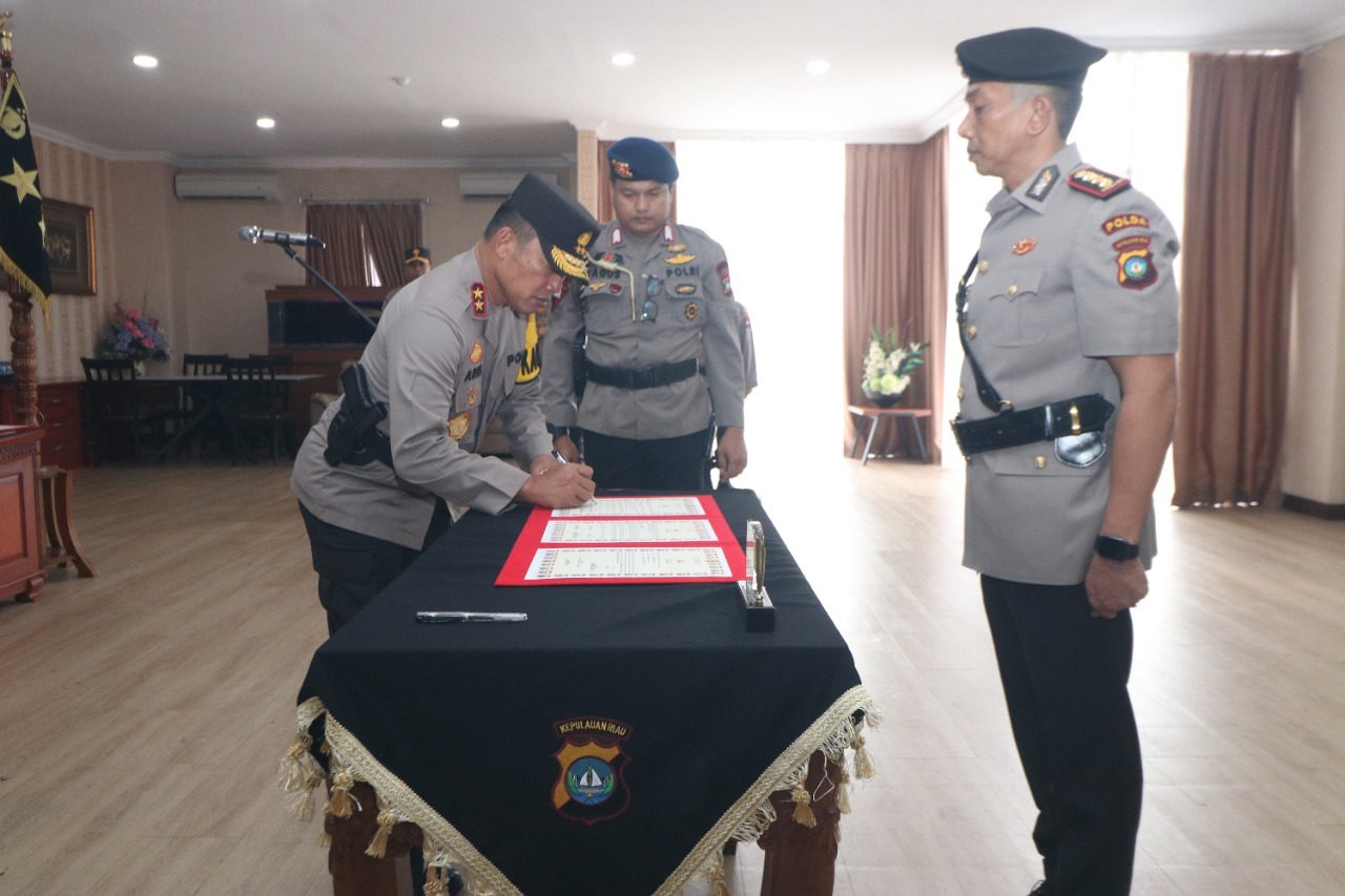 “Dalam serah terima jabatan tersebut, Kapolda Kepri selaku pimpinan Polri diwilayah Provinsi Kepulauan Riau langsung memimpin pengambilan Sumpah jabatan kepada pejabat yang dilantik dilaksanakan juga penandatanganan berita acara penyerahan terima jabatan, berita acara sumpah jabatan serta penandatanganan pakta integritas, yang merupakan hal wajib dilakukan kepada pejabat yang dilantik.” Tutup Kabid Humas Polda Kepri Kombes Pol. Harry Goldenhardt S., S.IK., M.Si.