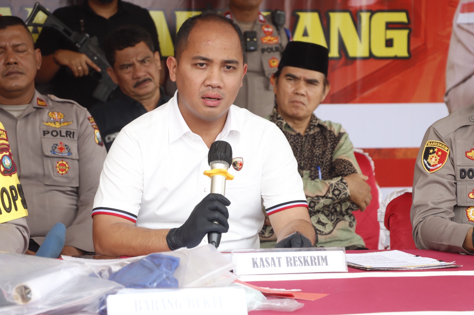 Batam-(NagoyaPos.Com)– Kapolresta Barelang Kombes Pol Heribertus Ompusunggu, SIK, MSi menggelar konferensi pers ungkap pelaku pembunuhan yang di dampingi oleh Kasat Resnarkoba Polresta Barelang Kompol Satria Nanda, SIK, MH, Kasat Lantas Polresta Barelang Kompol Cut Putri Amelia Sari, S.I.K, Kasat Reskrim Polresta Barelang AKP Giadi Nugraha, S.I.K, Kasihumas Iptu Donald Tambunan, SH. bertempat di Lobby Mapolresta Barelang. Selasa (16/07/2024)