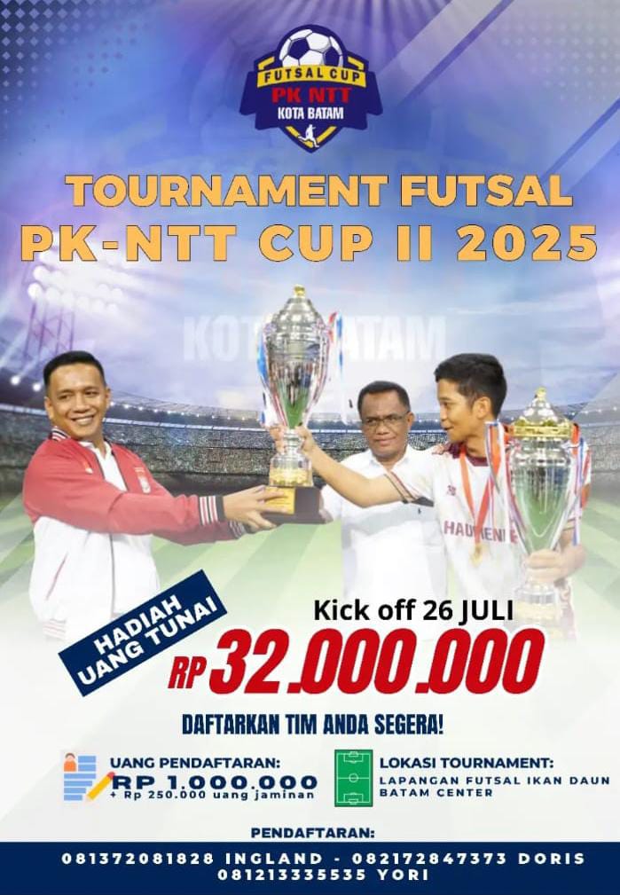 Turnamen ini, ditajuk dengan nama “Turnamen Futsal PK NTT Cup 2 tahun 2025”. Turnamen ini menjadi yang terbesar di Kepri karena jumlah pesertanya mencapai 40 klub Futsal dan terbagi didalam 8 grub. Sementara untuk lapangan pertandingan menggunakan 8 Lapangan secara bersamaan sejak babak penyisihan grub.