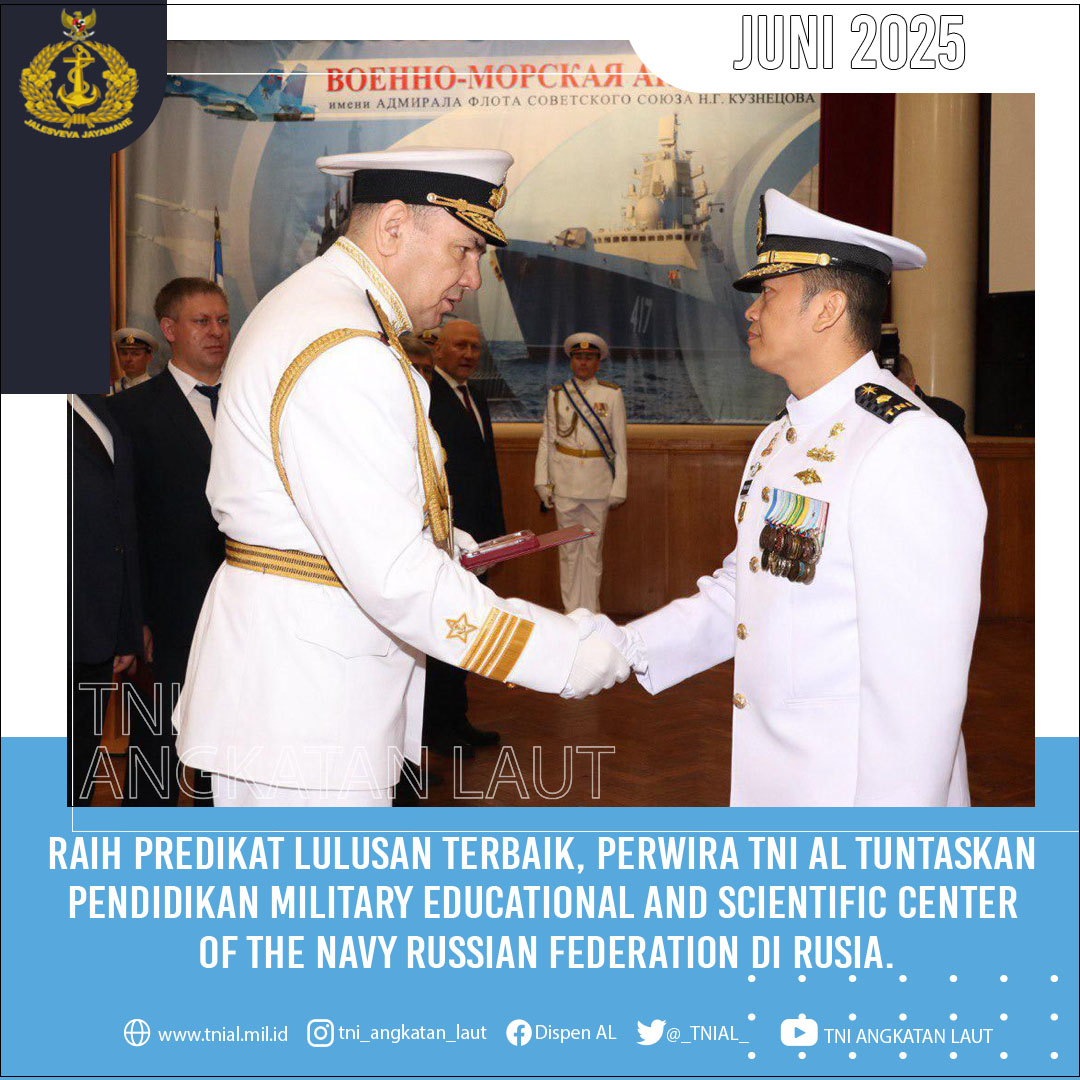 Batam-(NagoyaPos.Com) TNI AL – Perwira TNI AL, Mayor Laut (P) Firman Cahyadi, CTMP., CBEI., S.Hub.Int., berhasil menerima predikat lulusan terbaik pada program Military educational and scientific center of the navy (MSCN) TA. 2022 – 2025 di Akademi Angkatan Laut Rusia (Admiral Kusnitsova) Kota Saint Petersburg, Rusia.
