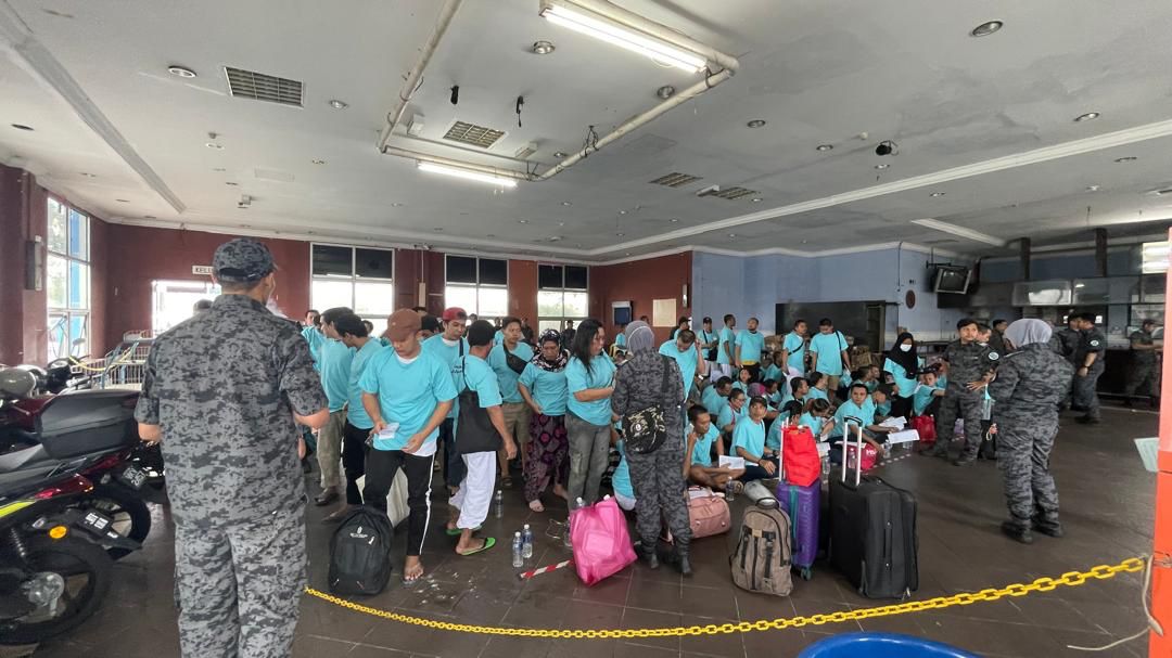 Proses deportasi dilakukan menggunakan kapal feri MDM Express yang berangkat pukul 14.30 waktu setempat dari Pelabuhan Pasir Gudang menuju Pelabuhan Batam Center, Kepulauan Riau.